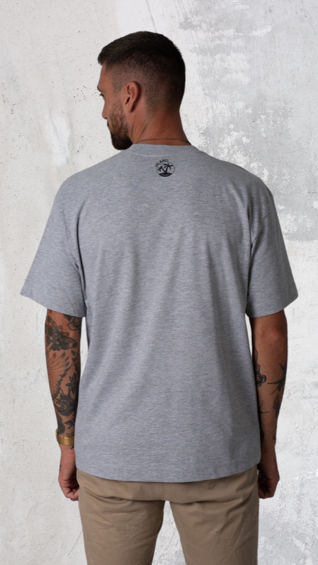 Grey Marl 100% Organic Cotton heavy-weight 220GSM oversize cut crew neck T-Shirt with Shaka Hand Colour Logo.